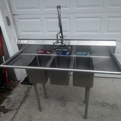 Regency 58" Three Compartment Commercial Sink with pre-Rinse faucet $599Kissimmee, FL