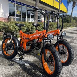 Orange VE7 Electric Bike Sasikbike Folding 35MPH Fat Tire ebike Financing Deal Available! $10 To $100 Down Payment! $50Azalea Park, FL