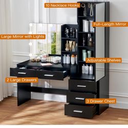 Elegant Makeup Vanity with Adjustable LED Mirror, 5 Drawers & Stool$160Orlando, FL