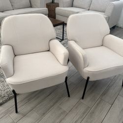 Beige Upholstered Cotton and Linen Fabric Accent Armchair with Metal Legs (Set of 2)$120Bvl, FL