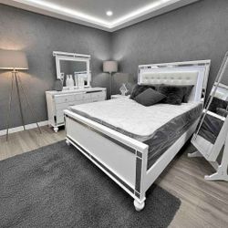 Led Lights Bed White With 4 Pieces Bed Dresser Mirror Nightstand $899Altamonte Springs, FL