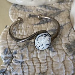 (JE05) Whimsygoth Goth Skeletal Cameo On Light Blue Background Silver Cuff$12Clermont, FL
