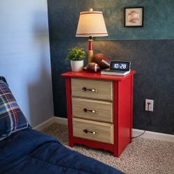 Red & Wood 3-Drawer Nightstand – Solid & Stylish. Located in Apopka, FL$60Apopka, FL