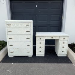Art Deco Style Desk & Dresser Set | White Crackle Finish $249Windermere, FL