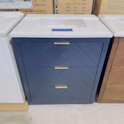Brand New Bathroom Vanity “30” in Navy Blue with 3 modern drawers and Marble Top in White $499 $499Azalea Park, FL