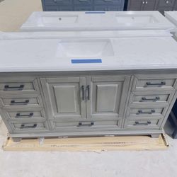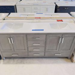 “60” Brand New Beautiful Bathroom Vanity in Marine Gray double sink, Soft Close Solid Wood, 5 drawers and 4 doors and electrical outlets included$899Azalea Park, FL