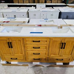 60” Brand New Bathroom Vanity in Teak color, Soft Close Solid Wood with Top in White $915 $915Azalea Park, FL