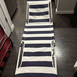 Navy blue and white striped fabric fold up lounge chair$15Altamonte Springs, FL