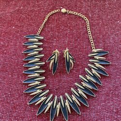 (JE04) Vintage Gold And Black Enamel Necklace And Earring Set$50Clermont, FL
