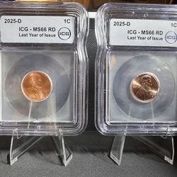 ICG Certified 2025-D 1c MS66 RD Last Year Of Issue Shield Penny.$45Longwood, FL