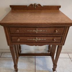 Antique Furniture Sewing Machine Cabinet Vintage Oak Sewing Side Table End Table Vintage Wooden Wheeled$200Winter Springs, FL