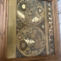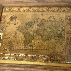 Vintage Framed Blaeu Foil Wall Map Old & New World Gold 26"x22" Nova Totivs$60Deltona, FL