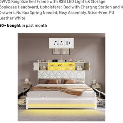 King Size Bed Frame White Faux Leather With Storage, 4 Drawers And Led Lights. $300Belle Isle, FL