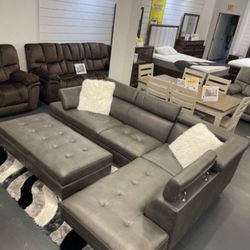 *Black Friday Now!!!*---Attractive Ibiza Gray Leather Sectional Sofa W/Ottoman---Delivery And Financing Availableš$999Sanford, FL
