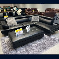 *Manager's Special*---Ibiza Black Sophisticated Leather Sectional Sofa W/Ottoman---Delivery And Easy Financing Available π$699Sanford, FL