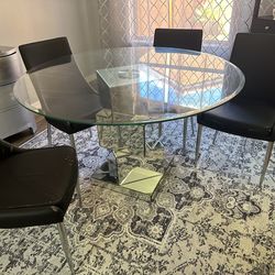 Glass dining table from Scan Design with 8 gray chairs and rug included$5,000Oakland, FL