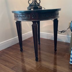 AMAZING LIKE NEW CIRCULAR SOLID WOOD/BLACK MARBLE END TABLE$100Orlando, FL