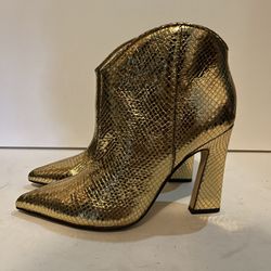 Marc Fisher Boots Womens 7M Masina Ankle Booties Heels Gold Leather Pull On$65Oviedo, FL