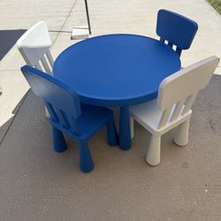IKEA MAMMUT Blue Children's Table and 4 Chairs Set Kids Playroom Indoor Outdoor$65Windermere, FL