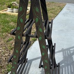 VINTAGE WOODEN PLANT STAND BROWN LADDER 4 TEIR DECORATIVE GREEN LEAF DESIGN ON SIDES$35Lady Lake, FL