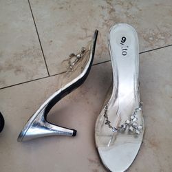 Silver With Clear Plastic Rhinestones Heels Size 9$5West Palm Beach, FL