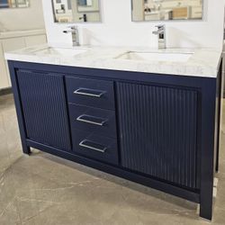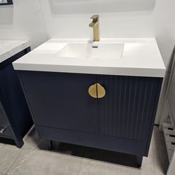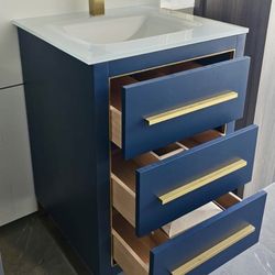 24” Solid Wood Vanity, Navy Blue, Stone Top, Soft Close Doors, Available For Pick Up$799Boca Raton, FL