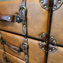 Brown Wooden Faux Leather 6 Drawers Room Chest with Buckle and Strap Detailing, 16" x 13" x 42"$300Lake Worth, FL