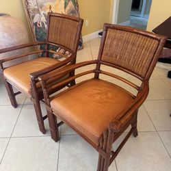 Pair of Ethan Allen plantation style chair with rattan woven back & leather seat - Excellent Condition $150$150Fort Lauderdale, FL