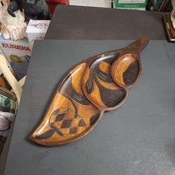Mid Century Vintage Hand-carved Wooden Divided Serving Tray Made From Monkey Pod Or Teak Wood In Rich Warm Browns 19"Long X 7.25" Wide $15Fort Lauderdale, FL