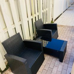 Black Wicker Patio Conversation Set 2 Chairs and Table Priced to Sell$80Vlg Wellingtn, FL