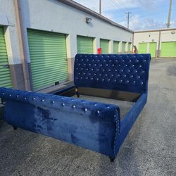 Stunning Navy Blue Velvet Tufted Sleigh Bed for king (delivery available)$300Delray Beach, FL