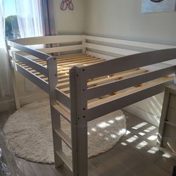 White Wooden Low Loft Style Bed With Ladder. Comes With Full Size Mattress In Plastic Protector Bag. Good Condition But Used$200Ocean Ridge, FL