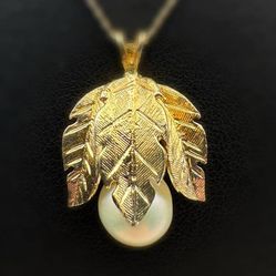 14k solid yellow gold Pearl three leave pendant charm & 15.5” curb chain necklace$600Boca Raton, FL