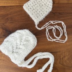 Set Of Two White Knitted Bonnets For Newborn Baby Photo Session$20Fort Lauderdale, FL