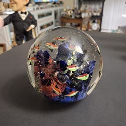 Stunning Large Hand Blown Murano Style Paperweight With Aquarium Fish In A Coral Reef With Bubbles All Around 5.5" Diameter, Weighs 5LBS 4OZ$80Tamarac, FL
