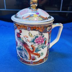 Beautiful Hand Painted Asian Lidded Mug With Floral/pheonix $25West Palm Beach, FL