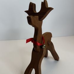 Handmade Wooden Reindeer Figurine with Red Ribbon and Bell – 10.5” $20North Miami Beach, FL