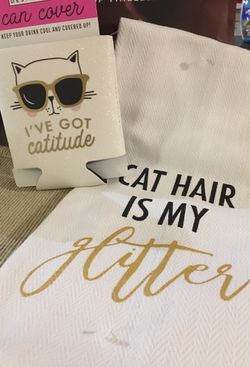 Cat Can cover and ‘Cat Hair is my Glitter ‘ kitchen towel$6Sunrise, FL