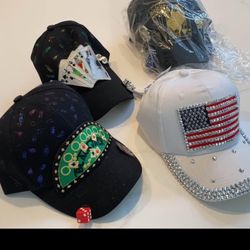 NEW USA American Flag BLING Rhinestone Art Baseball Cap. Or Casino Gambling Hat With Dice, Chips, Cards. $10 each FIRM.$10Boca Raton, FL