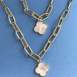 2pc Necklace + Bracelet Set- Gold Cable/Paperclip w/Mother Of Pearl Quatrefoil Dangling * Pickup Boca Raton$59Boca Raton, FL