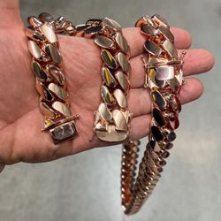 š¹š Set Chain & Bracelet 20mm Miami Cuban Link Rose Gold Plated Chain Necklace 18k & 14kš$200Pompano Beach, FL