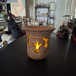 Hand Carved Terracotta Candle Holder For Tealights/Votive W/Angel Silhouette Cutouts, Rustic White-Wash Finish Over Red Clay-Made In Honduras 4.5"$7Fort Lauderdale, FL