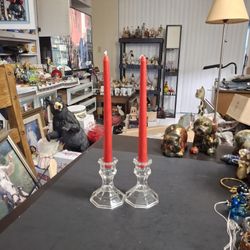 Vintage 90's Art Deco Style Pair Of Taper Candle Holders, Clear Faceted Octagonal Base With 2 Red 10" Taper Candles 4"H X 3.25"W$7Fort Lauderdale, FL
