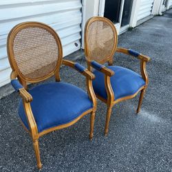$75 each! Two French Provincial Wood Carved Boho Webbed Cane Wicker Rattan Accent Arm Chairs! Excellent condition! 23x20x39in Seat Height 21in$75West Palm Beach, FL