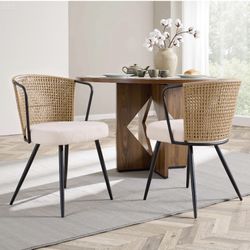 Faux Rattan Modern Kitchen Chairs with Lamb Fleece Cushion, Mid Century Style Living Room Chairs,$150Wellington, FL