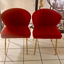 Set of 2 Red Velvet Accent Chairs MCM With Gold Legs$20Oakland Park, FL