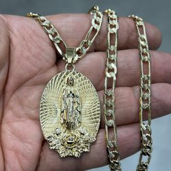 14k premium 5x gold plated Jesus pendant and Cuban necklace β