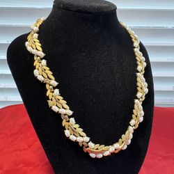 VINTAGE SIGNED TRIFARI Gold Tone Choker Necklace Faux Pearls Leaves$60Boca Raton, FL
