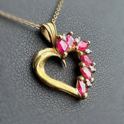Jewelry 10k yellow gold pink ruby natural diamond stone 1.05CTW heart pendant charm$350Pompano Beach, FL
