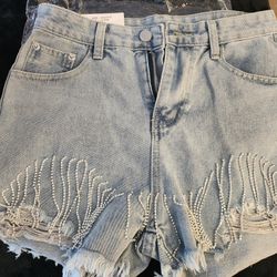 Rhinestone Tassels Denim High Waist Shorts size S$40Pompano Beach, FL